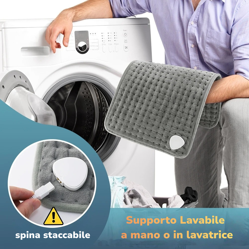➡️ Copre una zona più estesa del corpo, offrendo calore uniforme e avvolgente su schiena, addome o lombare.